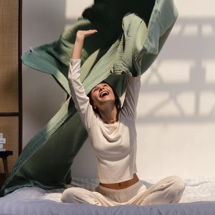 Our organic blankets and linens are crafted to provide ultimate softness and warmth for a restful experience.