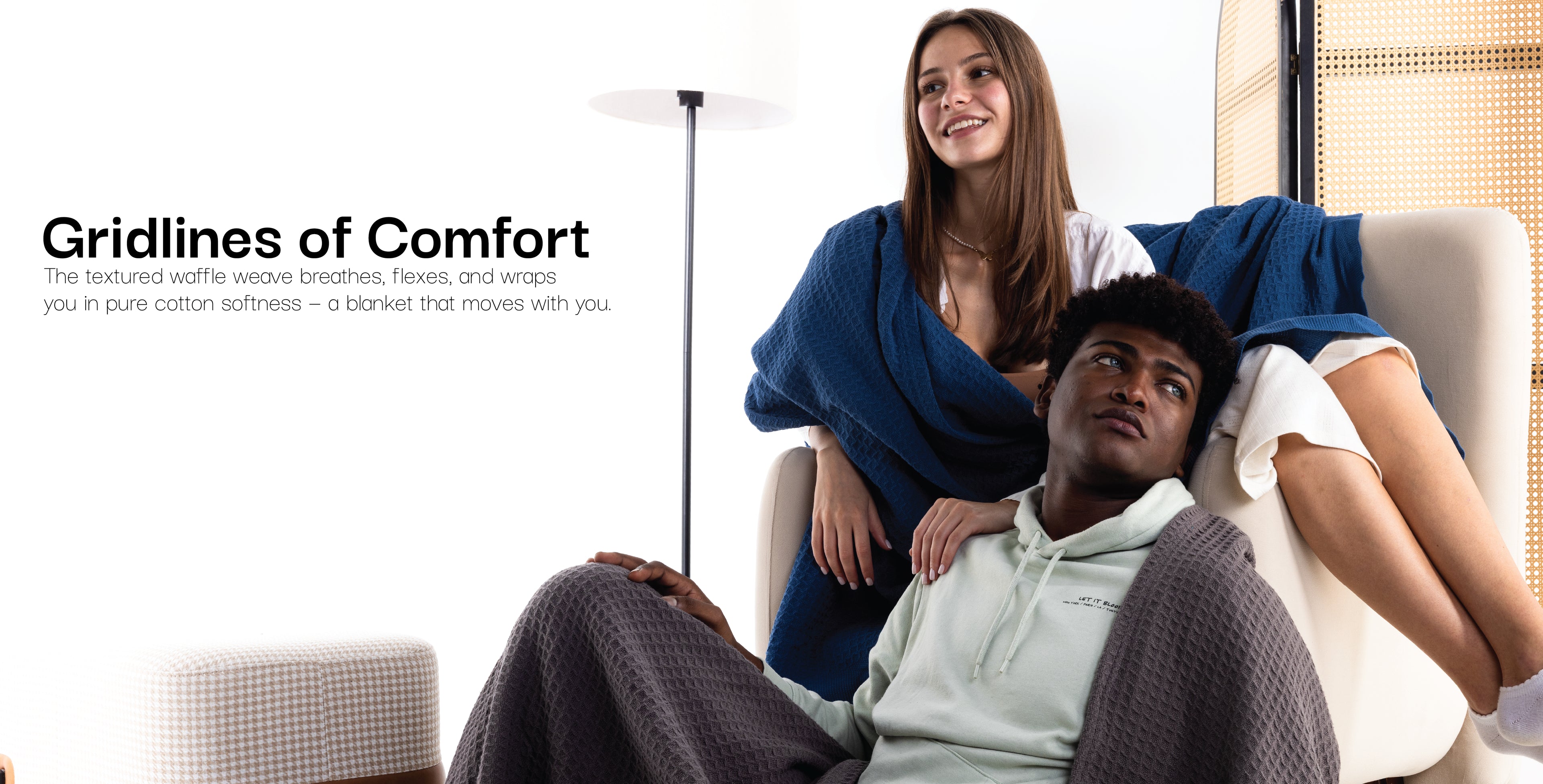 Experience comfort and warmth with our 100% cotton waffle blanket, suited for all seasons. Its intricate waffle design adds a modern aesthetic and enhances airflow, ensuring you stay cozy without overheating. Designed with meticulous attention to detail, this blanket offers a blend of luxury and durability that elevates your bedding experience. It is lightweight and provides a plushness that gets better with every wash.